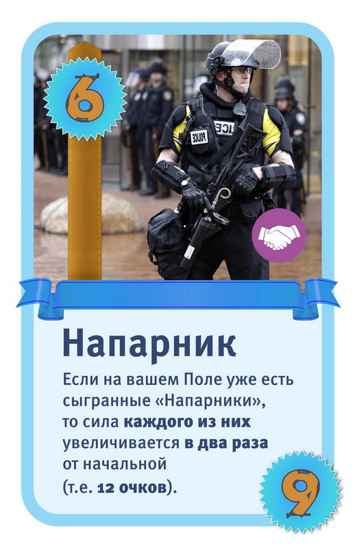 И каждое свойство может принести на своё Поле или в Руку больше карт и очков или испортить тактику оппоненту и отнять очки у него. Вам придется считать карты, запоминать Сброс и планировать свою тактику, которая каждую партию будет разной.