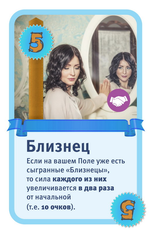 И каждое свойство может принести на своё Поле или в Руку больше карт и очков или испортить тактику оппоненту и отнять очки у него. Вам придется считать карты, запоминать Сброс и планировать свою тактику, которая каждую партию будет разной.